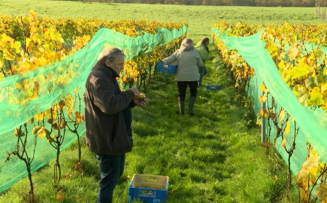 Ce samedi 26 octobre, le domaine viticole de Doriémont à Gochenée a terminé ses vendanges. Pour récolter et trier les dernières grappes de raisin, Colienne Demain s'est entourée d'une équipe de bénévoles. Une récolte qui a souffert de la météo.