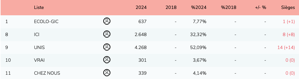 Voici les résultats définitifs pour les élections communales à Couvin. La liste UNIS est au pouvoir en majorité absolue.