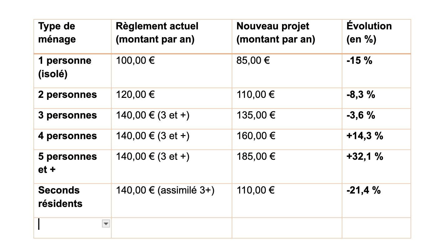 La taxe déchets fait l’objet d’une nouvelle formule pour « récompenser les bons trieurs ». Pour Christophe Gilon : « Le nouveau projet propose de réduire la part forfaitaire pour les petits ménages tout en introduisant une progressivité plus fine pour les grands foyers. Le règlement actuel regroupe les ménages de 3 personnes et plus dans une seule catégorie, tandis que le nouveau règlement crée deux catégories supplémentaires (4 personnes et 5+) et ajuste le coût pour les seconds résidents. »