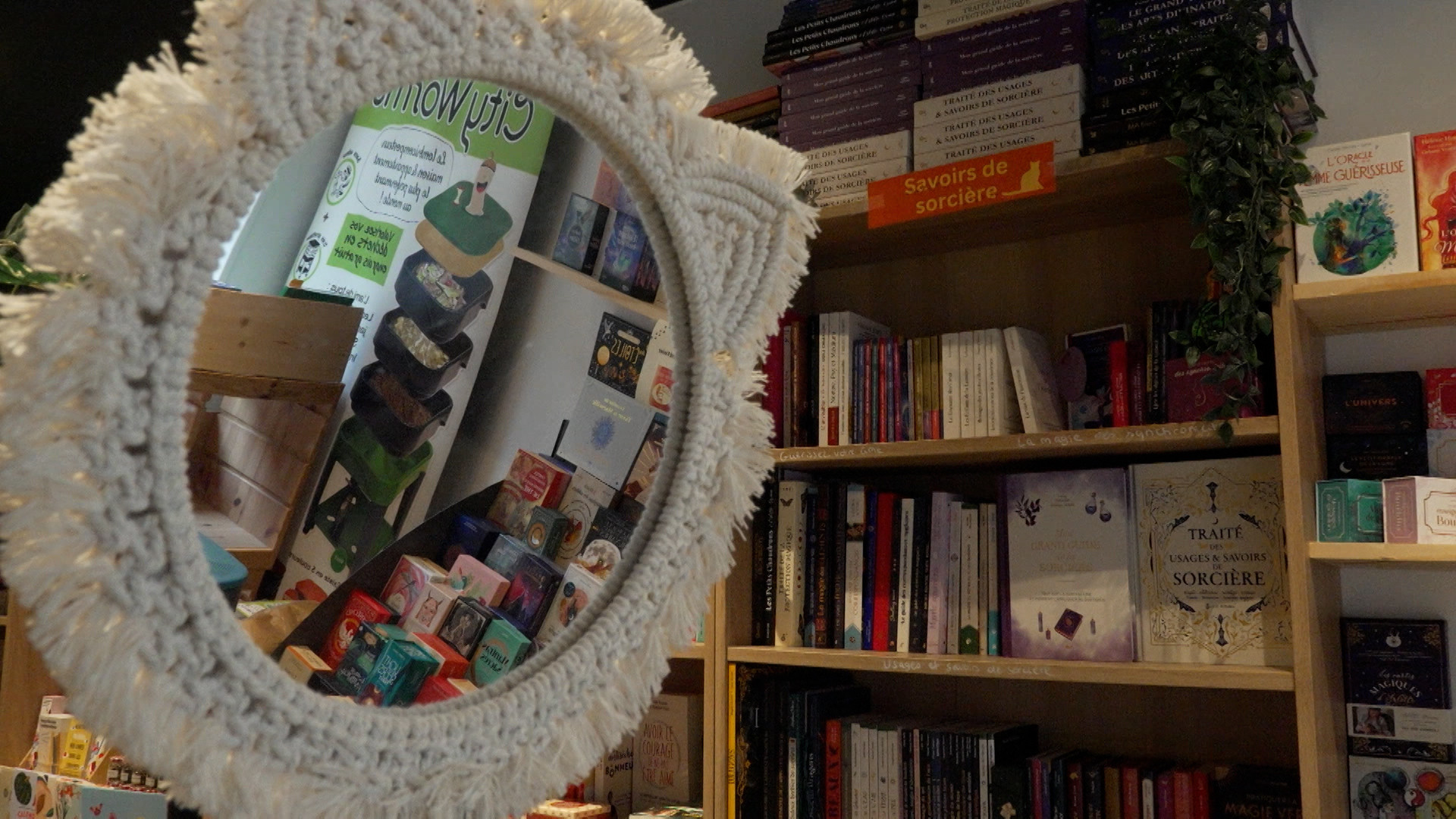 Des chats sont donc proposés à l'adoption. Deuxième spécificité : on trouve ici un large rayon consacré au bien-être sous toutes ses formes : psychologie, spiritualité, santé, écologie...