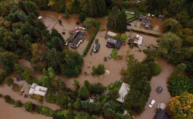 Le centre d'Olloy-sur-Viroin sous eau